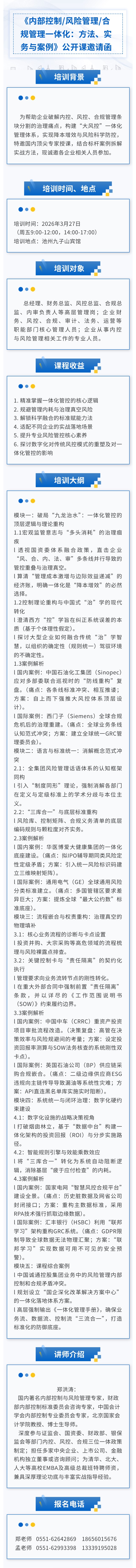 《內(nèi)部控制/風(fēng)險管理/合規(guī)管理一體化:方法、實務(wù)與案例》公開課火熱報名中