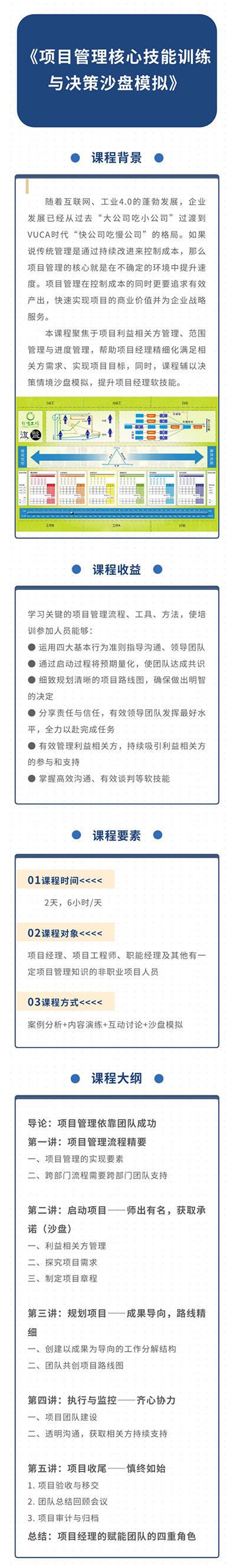 【好課推薦】《項目管理核心技能訓練與決策沙盤模擬》