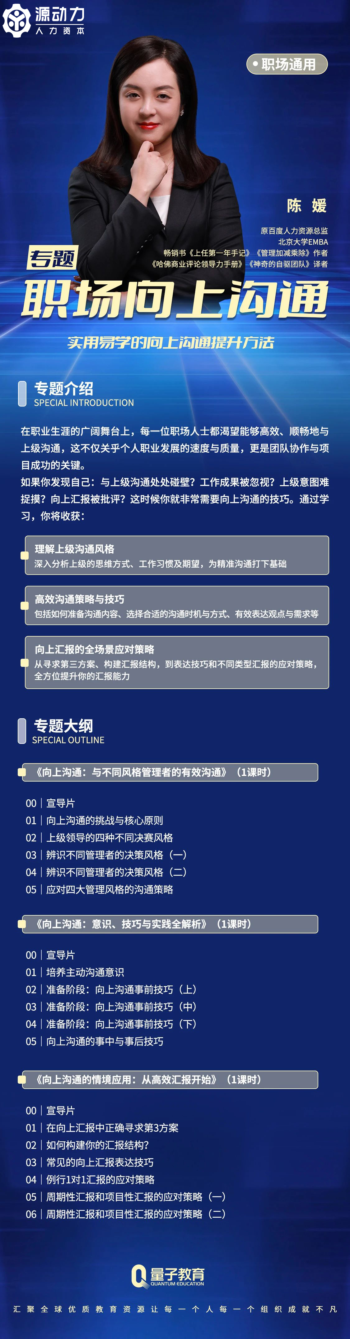 向上溝通是每個職場人必備的技能; 如果您有以下困擾: 凡事自己扛,缺乏主動溝通意識? 溝通時只知道吐槽,不知道爭?。?/span> 匯報時講不清重點,無法展現自己的工作成果? 本專題將帶您深入探索如何精準解讀上級的溝通風格,掌握高效溝通的核心技巧,并學會在各種情境下自如應對向上匯報。 已關注 關注 重播 分享 贊 關閉 觀看更多 更多 退出全屏 切換到豎屏全屏退出全屏 源動力人力資本已關注 分享視頻 ,時長03:10 0/0 00:00/03:10 切換到橫屏模式 繼續播放 進度條,百分之0 播放 00:00 / 03:10 03:10 全屏 倍速播放中 您的瀏覽器不支持 video 標簽 繼續觀看 【源動力培訓】線上好課推薦 | 《提升職場“軟實力”,掌握向上溝通的技巧》 觀看更多 轉載 , 【源動力培訓】線上好課推薦 | 《提升職場“軟實力”,掌握向上溝通的技巧》 源動力人力資本已關注 分享點贊在看 已同步到看一看寫下你的評論 視頻詳情 已關注 關注 重播 分享 贊 關閉 觀看更多 更多 退出全屏 切換到豎屏全屏退出全屏 源動力人力資本已關注 分享視頻 ,時長03:10 0/0 00:00/03:10 切換到橫屏模式 繼續播放 進度條,百分之0 播放 00:00 / 03:10 03:10 全屏 倍速播放中 您的瀏覽器不支持 video 標簽 繼續觀看 【源動力培訓】線上好課推薦 | 《提升職場“軟實力”,掌握向上溝通的技巧》 觀看更多 轉載 , 【源動力培訓】線上好課推薦 | 《提升職場“軟實力”,掌握向上溝通的技巧》 源動力人力資本已關注 分享點贊在看 已同步到看一看寫下你的評論 視頻詳情 已關注 關注 重播 分享 贊 關閉 觀看更多 更多 退出全屏 切換到豎屏全屏退出全屏 源動力人力資本已關注 分享視頻 ,時長03:10 0/0 00:00/03:10 切換到橫屏模式 繼續播放 進度條,百分之0 播放 00:00 / 03:10 03:10 全屏 倍速播放中 您的瀏覽器不支持 video 標簽 繼續觀看 【源動力培訓】線上好課推薦 | 《提升職場“軟實力”,掌握向上溝通的技巧》 觀看更多 轉載 , 【源動力培訓】線上好課推薦 | 《提升職場“軟實力”,掌握向上溝通的技巧》 源動力人力資本已關注 分享點贊在看 已同步到看一看寫下你的評論 視頻詳情